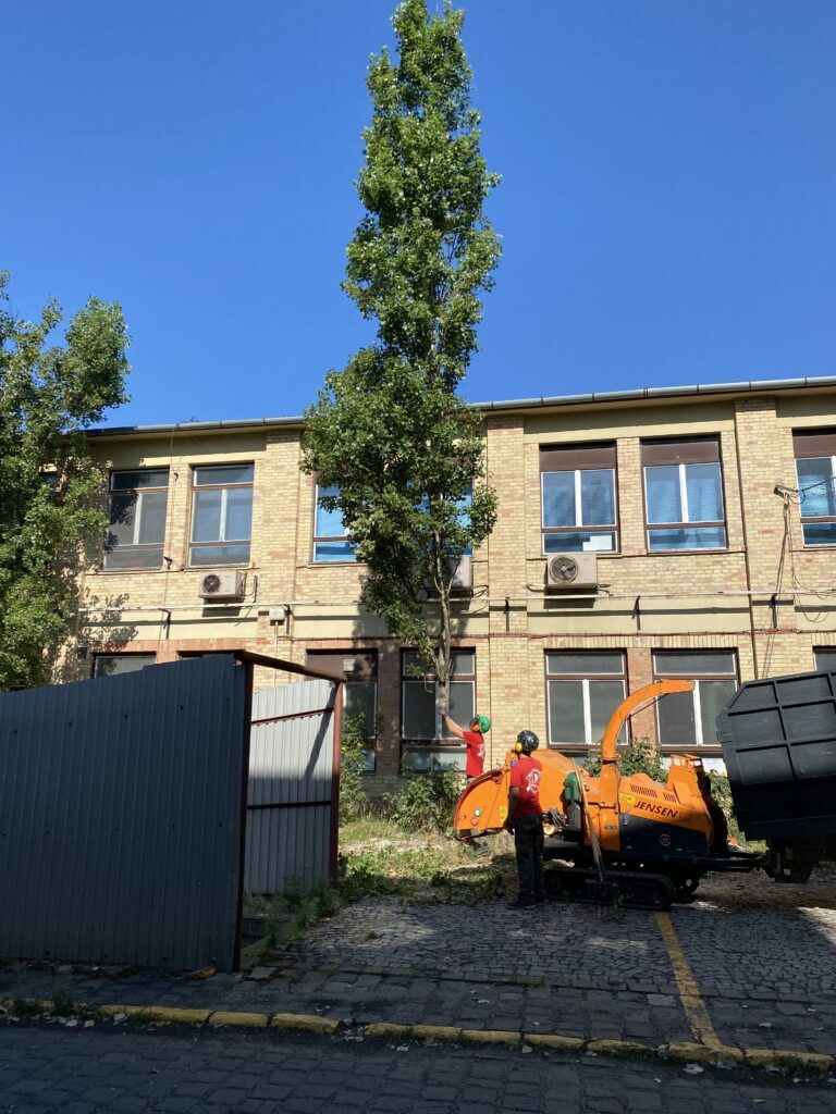 Számos az épületekre veszélyes nyárfát, japán akácot és juhart gallyaztunk le vagy vágtunk ki a területen, a keletkező zöldhulladékot helyszíni aprítást követően elszállítottuk.