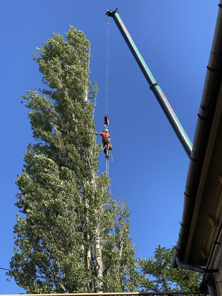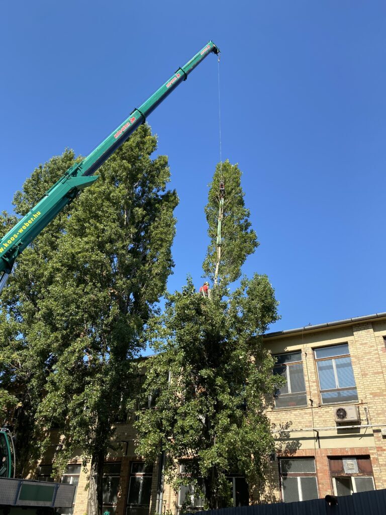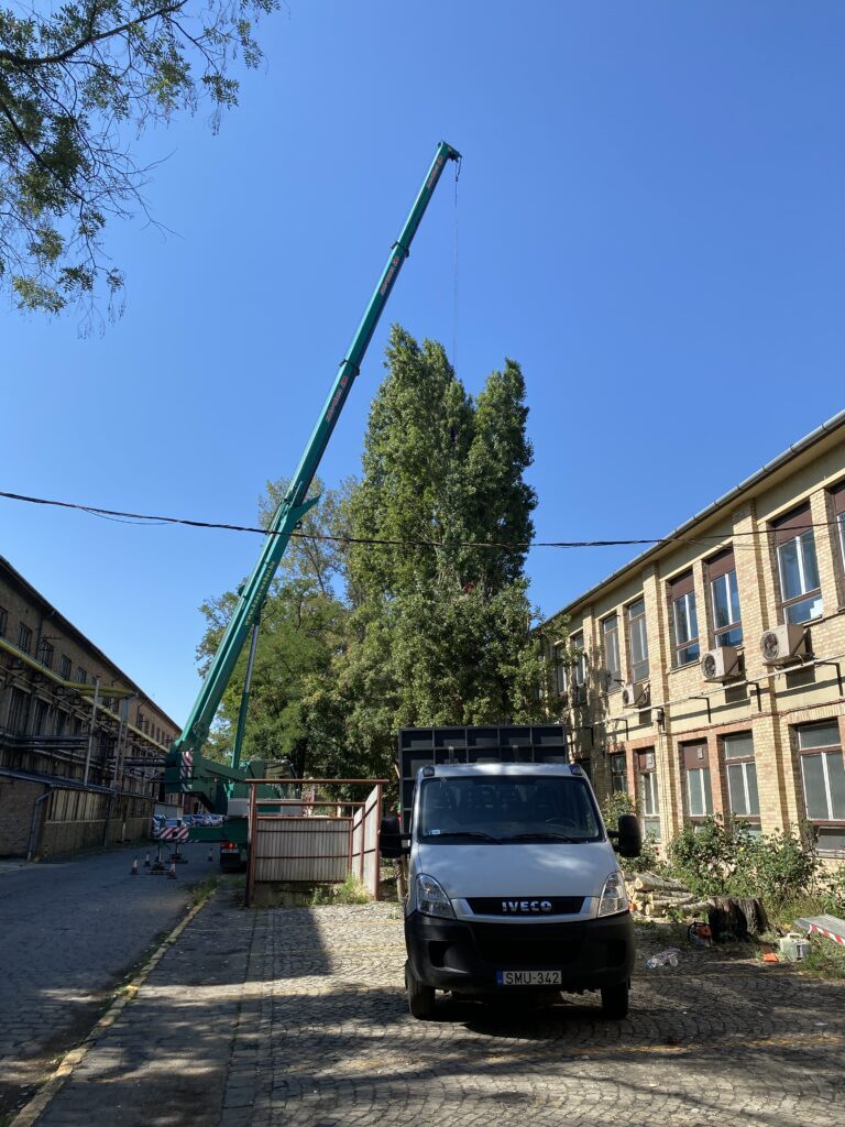 Nagy, fába vágtunk.. csapatunk 4 napon keresztül dolgozott Budapesten a csepeli gyártelep területén 40 tonnás autódaru, kosaras emelő és alpintechnika segítségével.