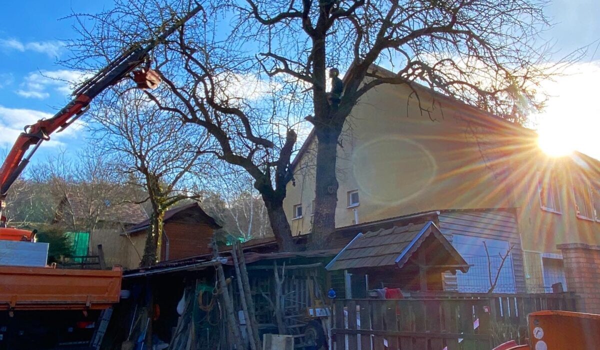 Ezt a két öreg körte fát a házak nőtték körbe és nem fordítva, de a végeredmény sajnos ugyan az: a fák veszélyessé váltak.