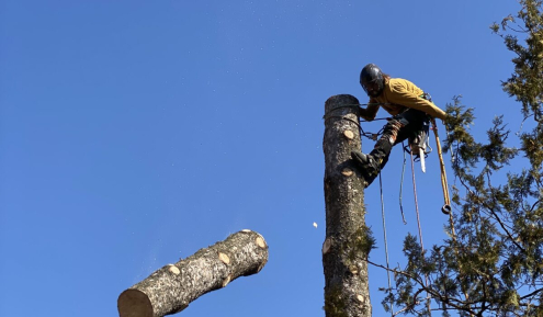 Veszélyessé vált fenyőfák kivágása - Bajna