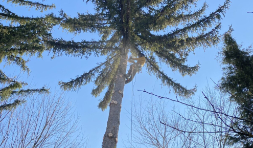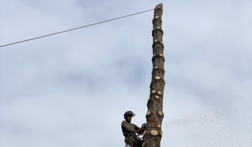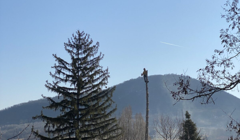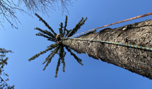 - A fenyőfa gallyainak eltávolítása alulról felfelé haladva alpintechnikával