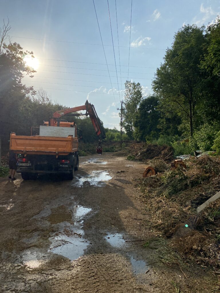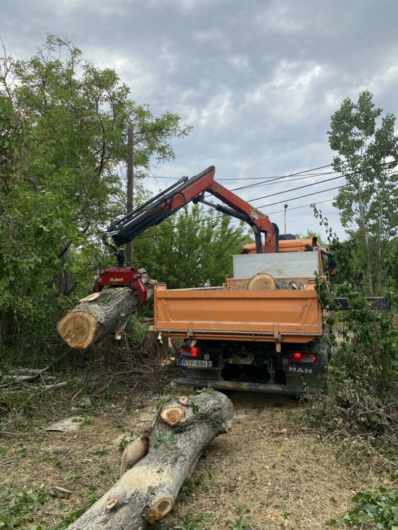 A keletkező faanyagot KCR-és teherautóval jótékony célból az önkormányzat telephelyére szállítottuk el.