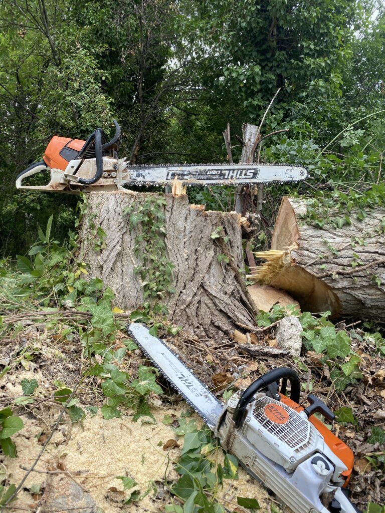 2 db fiatal nyárfa biztonságos eltávolítása talajszintig irányított döntéssel Budapesten a 3. kerületben